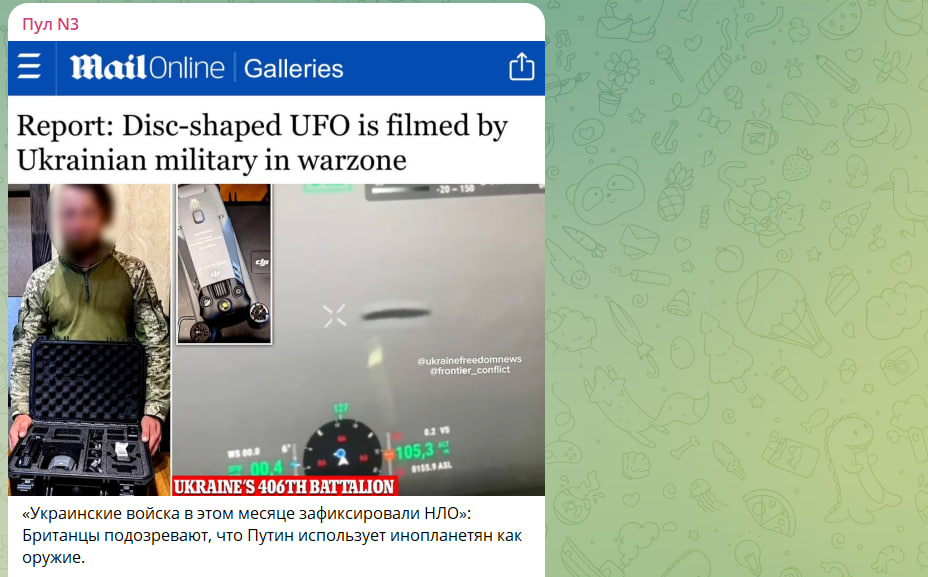Британцы подозревают, что Путин использует инопланетян как оружие. Абсолютно тихий НЛО в форме диска был заснят на камеру украинскими войсками. Объект был замечен над зоной боевых действий. Видеозапись была сделана с помощью дрона Mavic компании DJI,