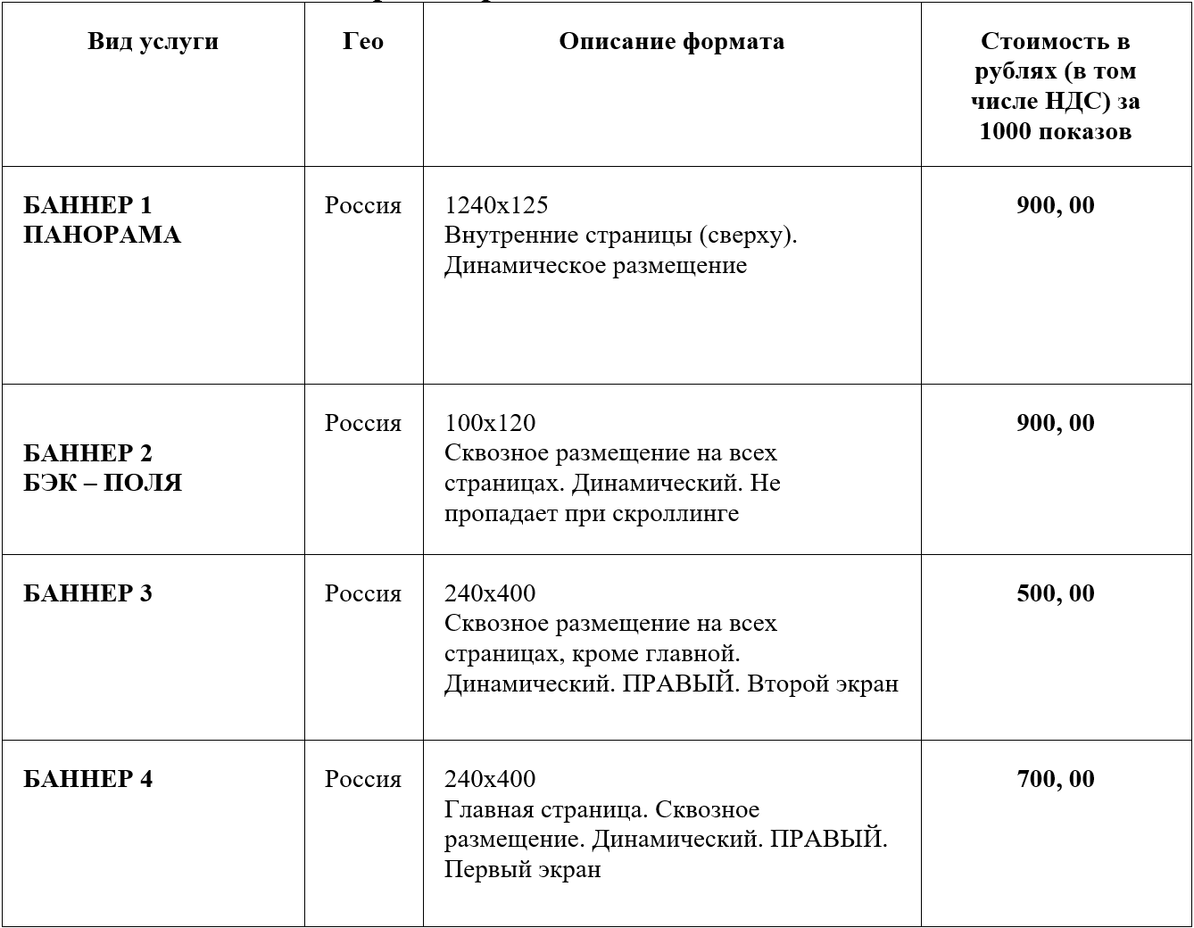 Форматы размещения - БАННЕРЫ