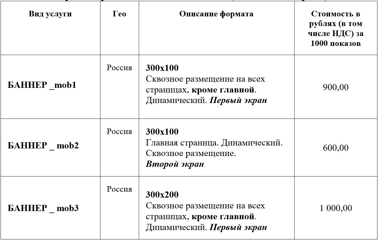Форматы размещения - БАННЕРЫ (мобильная версия)