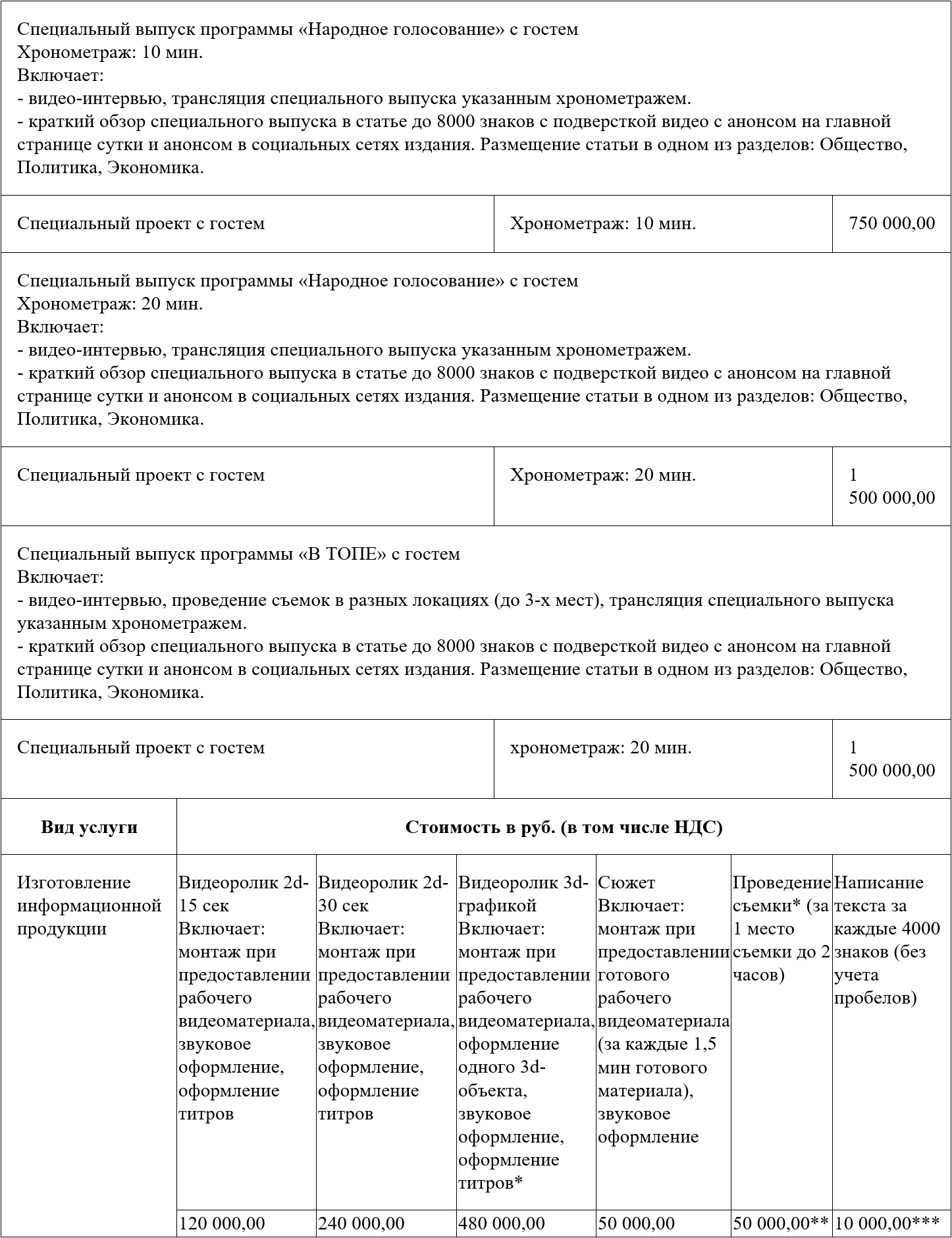 *** За каждые последующие (полные и неполные) 4000 знаков стоимость увеличивается на аналогичную сумму.