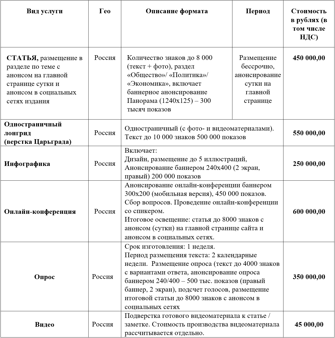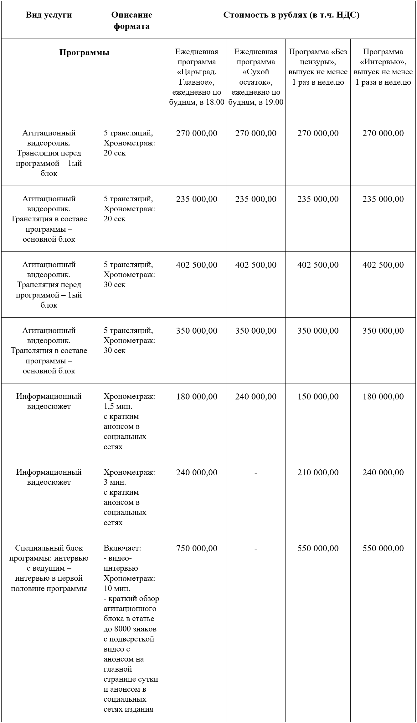 Сведения о размере и другие условия оплаты агитационных материалов в сетевом издании «Царьград» (TSARGRAD.TV) для проведения предвыборной агитации