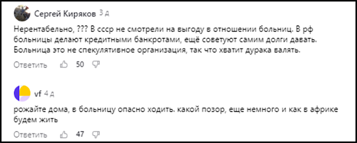 Люди возмущены "оптимизацией" здравоохранения, которая ведёт прямиком к уровню африканских стран//Скриншот комментариев с дзен-канала Царьграда
