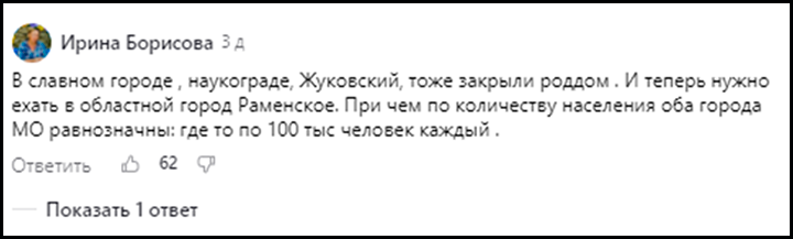 У нас позакрывали роддома практически во всех районных центрах, и роженицам некоторых районов приходится по 2 часа добираться до областного центра. Депздрав региона говорит о нерентабельности районных роддомов, умалчивая о том, что в течение года рожениц при наличии в своём районном городе действующего роддома под всякими предлогами вынуждали ехать в роддома, находящиеся в областном центре. Из-за этого, по статистике, количество родов в районных роддомах нерентабельно для содержания.