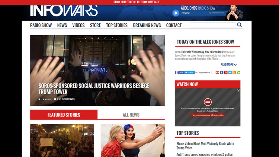 Это реальная Америка, Америка реализма, которая выбрала своего президента и не поддалась на лживую пропаганду глобалистских либеральных СМИ. Это значит не только полный дефолт практически всех сетей и крупнейших информационных концернов, кроме Los Angeles Times, уверенно, вопреки всем остальным, предсказывавшей победу Трампа. Это значит, констатирует политолог, что появилась новая информационная сфера, символом которой стал сайт Алекса Джонса infoWars.com, превратившийся в мощнейший ресурс истинной информации в США, чья аудитория стремительно выросла до 20 000 000 в считанные дни, обойдя крупнобюджетные каналы.