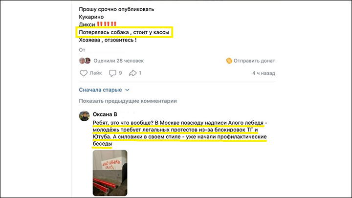 А вот повышающие градус истерики на тему "завтра вообще всё запретят" комментарии стабильно появлялись на различных площадках (ВК, Телеграм и других), дополняя негативный информационный фон. На явно искусственное происхождение этих "возмущений" указывает очевидно абсурдный характер многих из них – так, причитания об "Алом лебеде" появлялись даже... в объявлениях о пропаже собак.