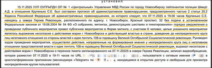 Впрочем, участвовали в "движении" и взрослые люди – допустим, некий журналист из Новосибирска Сергей Крупенько. Он известен своей защитой экстремистского ФБК** и организацией несогласованных собраний, на которых делает себе имя "оппозиционера". Причём ему, видимо, нет особой разницы, что это за собрания, – главное, что кто-то против чего-то выступает. Даже вот митинг в честь борцов-революционеров проводил всего полгода назад, за что отправился на 15 суток.