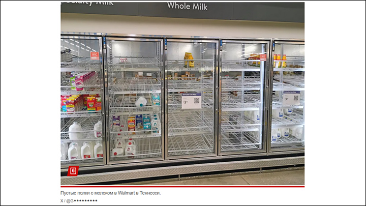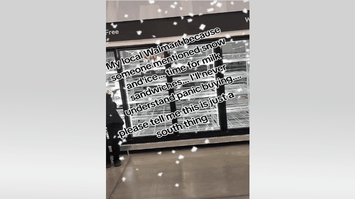 Её видео с полупустыми холодильниками в местном магазине наглядно иллюстрирует общую тенденцию. Подобные кадры приходят в ленту из Техаса, Оклахомы, Теннесси и Вирджинии.