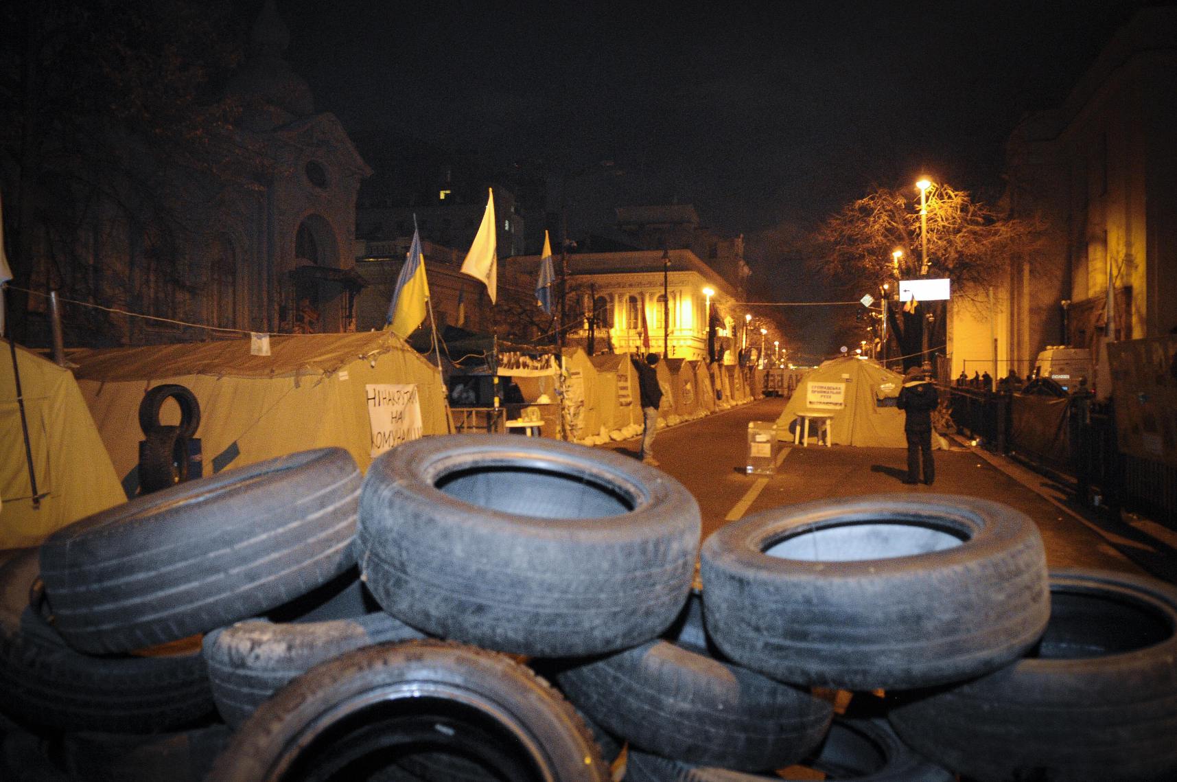 Минувшей ночью возле следственного изолятора СБУ на Аскольдовом переулке собралось от нескольких десятков до сотни “михомайданщиков”, которые потребовали освобождения своего лидера. Сторонники грузинского гастарбайтера пытались поставить палатки и поджечь покрышки, но получили жёсткий отпор от сотрудников Нацгвардии. Сообщается как минимум об одном пострадавшем в результате потасовки митингующих с полицией.