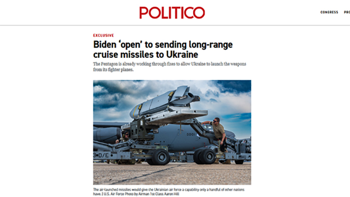 Поставка крылатых ракет анонсирована американским изданием Politico, которое "застенчиво" сообщило, что администрация Байдена "открыта идее" поставки Киеву дальнобойных ракет для F-16.