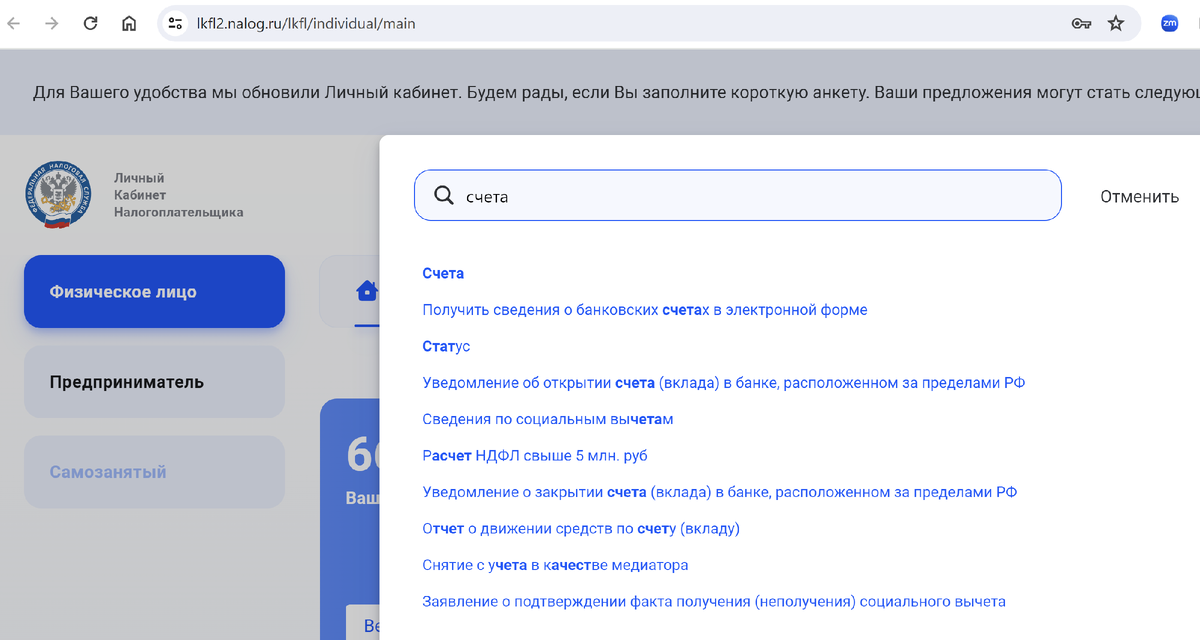А для выяснения, не открыты ли на Вас "левые счета", следует перейти в личный кабинет на сайте Федеральной налоговой службы и набрать в окошке поиска "счета". Затем выбрать "Получить сведения о банковских счетах в электронной форме".