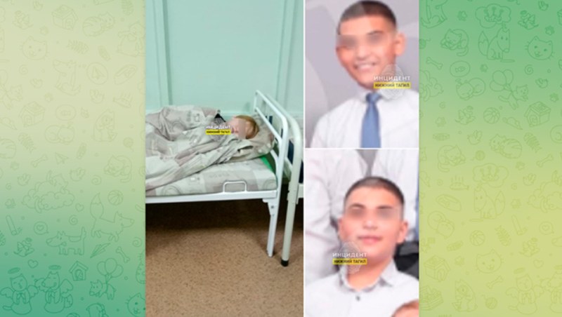 Избитая Соня в больнице. Справа — хулиганы. Скрин с ТГ-канала "Инцидент Тагил"