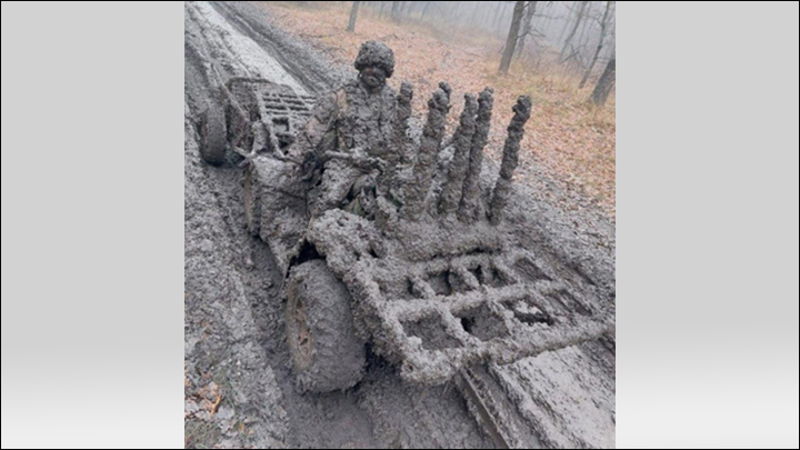 Война сейчас такова, что наш солдат не отказывается ни от каких транспортных средств. Даже от таких. Скриншот: ТГ-канал "Военный Осведомитель".