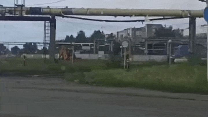Неизвестная бронемашина на танковом шасси, снятая видеорегистратором случайного водителя, июль 2024 года. Источник: ТГ-канал "Военный Осведомитель".