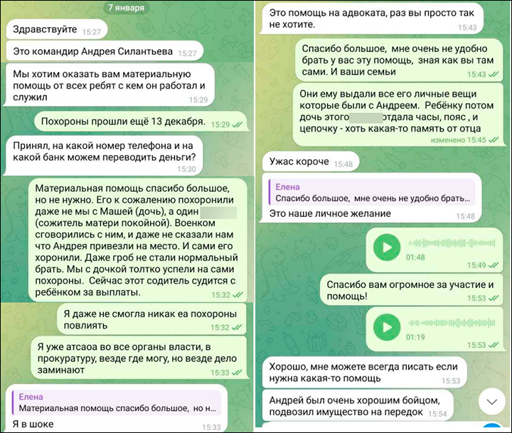 Разговор состоялся в субботу. Елена была ошарашена и сначала не поверила: думала, звонят мошенники. Но в понедельник утром обратилась в военкомат Тольятти, где ей подтвердили информацию и объяснили, что делать дальше. Она перезвонила командиру части и сообщила, что они с дочерью решили хоронить Андрея в Калаче-на-Дону, на кладбище рядом с матерью.