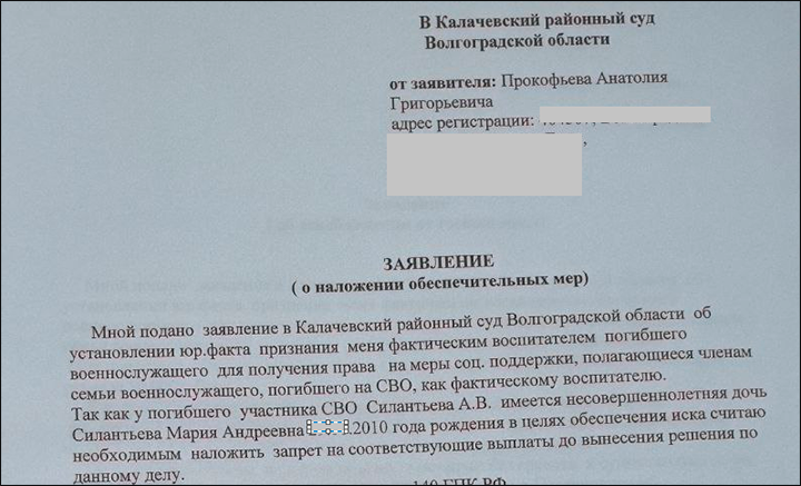 А через несколько дней после похорон выяснилась подоплёка: тот самый "отчим", перехвативший на себя похороны, подал иск в суд о признании его "добросовестным воспитателем" Андрея. Ответчиком значится Елена – как представитель несовершеннолетней дочери погибшего бойца. Так называемый дедушка пытается отнять у девочки половину положенных ей по закону выплат. Цена вопроса – 14 млн рублей, на семь из них претендует отчим.