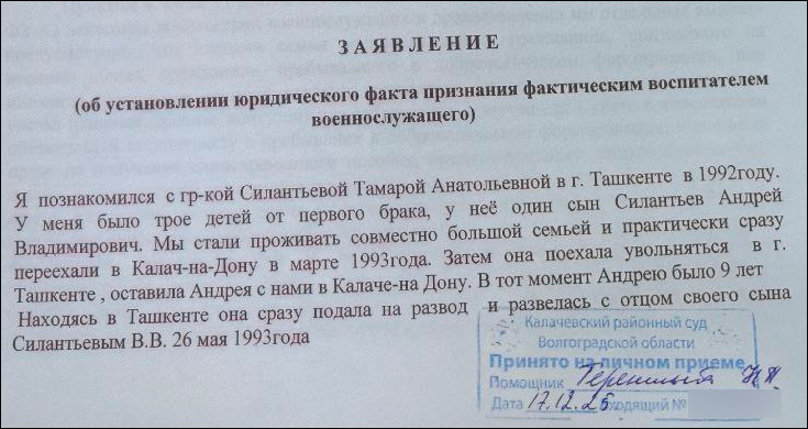 Заявление о признании "фактическим воспитателем" Прокофьев подал через четыре дня после похорон. Скриншот документа, предоставлено Царьграду