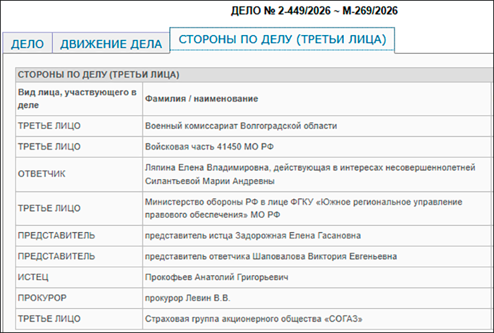 Когда сослуживцы Андрея узнали, что "дедушка" судится с 15-летней Машей за выплаты, они были в шоке. Ребята собрали деньги и передали их её маме на адвоката. Дело рассматривает Калачёвский райсуд, хотя ответчики ходатайствовали, чтобы это происходило по месту жительства ребёнка – в Москве. Но суд идёт в маленьком городке, где все друг друга знают и где у истца гораздо больше шансов, что вопрос будет решён в его пользу.