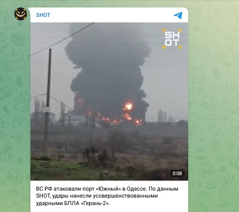 Позже источники телеграм-канала SHOT сообщили, что Вооружённые силы России атаковали порт Южный в Одессе. Сообщалось, что удары нанесли усовершенствованными ударными БПЛА "Герань-2". По предварительным данным, повреждено около 30 объектов компании Allseeds Black Sea, включая крупнейший терминал растительного масла. Отсюда продукцию отправляли в страны Евросоюза. Также из-за ударов по энергетической инфраструктуре без света в регионе остаются более 120 тысяч абонентов.