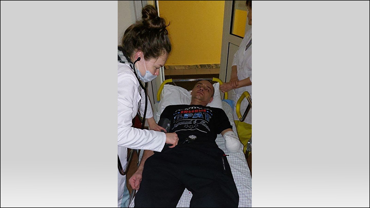 Мы пробили колесо и восемь часов ехали на запасной докатке. Михаила забирали под обстрелом с температурой под 40, он был в коматозе. Под утро в Луганске купили новое колесо. Знакомые военные помогли отвезти Мишу в больницу станицы Луганской. Там ему сделали первую перевязку. Выяснилось, что абсцесс начался потому, что ему вместо дренажной трубки напихали в рану бинтов. Они впитали в себя всю грязь, и началось заражение крови.