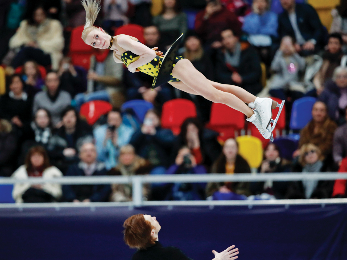 Только Евгении Медведевой удалось задержаться в этом потоке всё более сильных и юных соперниц, которых готовит ей ее тренер. Она дважды становилась чемпионкой мира. Но вот этой осенью накрыла ее травма – перелом плюсневых костей стопы. Травма очень неприятная. Она зачастую возвращается вскоре после того, как кажется, что ее вылечили. Травма, требующая очень долгого покоя – в несколько месяцев, а этого Медведева себе позволить не может. У наших великих спортсменов уже была такая травма. Она заставила расстаться со спортом чемпионку мира по художественной гимнастике Ляйсан Утяшеву. Ляйсан много раз возвращалась на ковер, но при росте нагрузок плюсневые кости стопы напоминали о себе. Вот это-то и страшно, когда смотришь на Женю Медведеву на льду. Страшно заодно и за ее будущее выступление на Олимпиаде в Южной Корее. В короткой программе она берегла ногу, каталась, не забывая о боли.