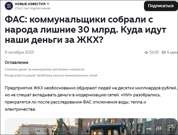 За двадцать с лишним лет реформа ЖКХ прошла путь от надежды на эффективное самоуправление до создания "чёрной дыры", в которой бесследно исчезают наши триллионы. При собираемости платежей свыше 96% отрасль умудряется сохранять критический износ сетей до 80% в ряде регионов – это математический парадокс, объяснимый только узаконенным "кормлением" монополий-паразитов, которым официально гарантирована прибыль в 20%. Мы десятилетиями платим в двойном и тройном размере за "модернизацию", чтобы потом услышать от высоких чиновников: "Ой, а ваши деньги исчезли, и мы не знаем куда".