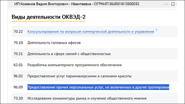 При этом сам Вадим Коженов является индивидуальным предпринимателем и по одному из зарегистрированных видов деятельности действительно может давать консультации приезжим.