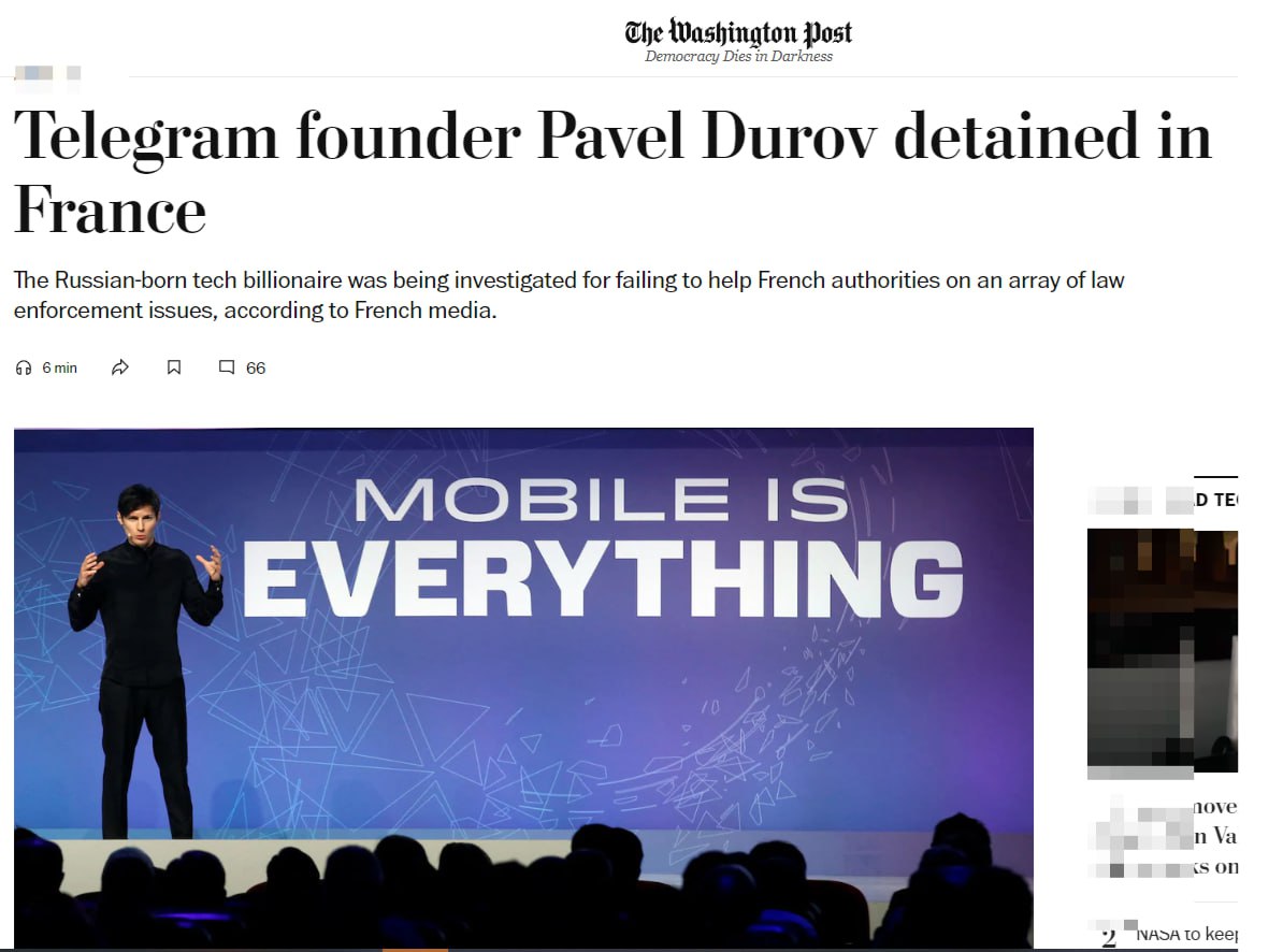 The Washington Post. Арест Павла Дурова — мировая новость.