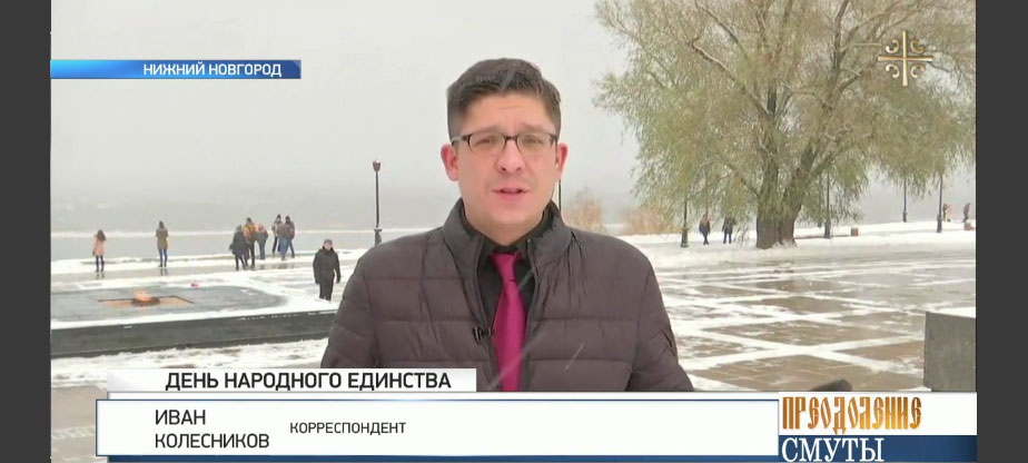 11:08 На прямую связь со студией из Нижнего Новгорода, столицы Второго ополчения выходит корреспондент телеканала "Царьград" Иван Колесников