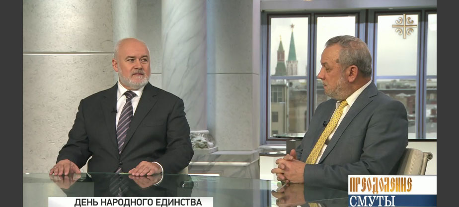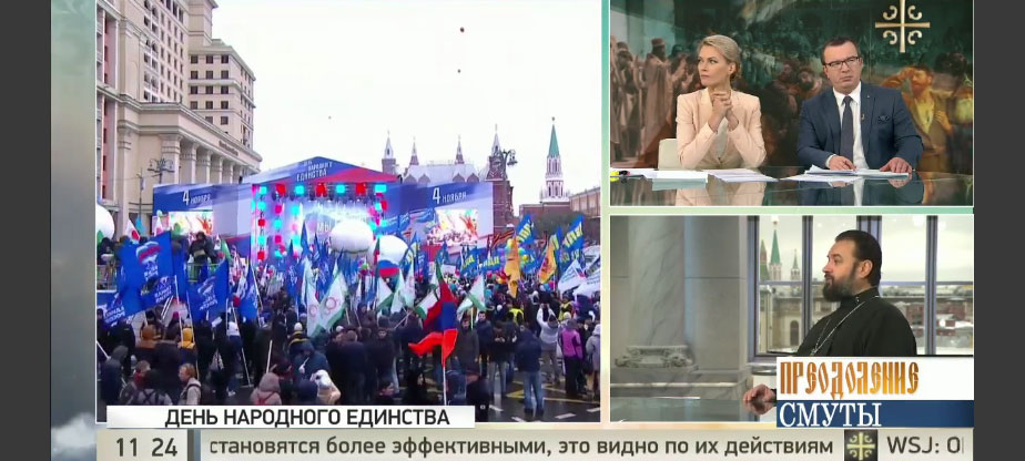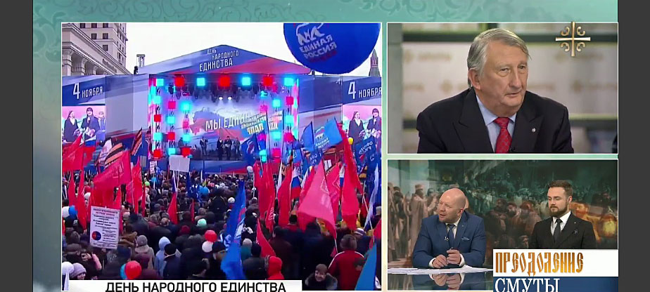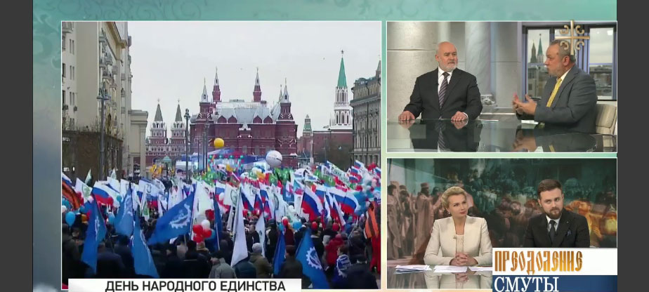 14:25 Генеральный продюсер телеканала Царьград Константин Малофеев: "Православные этот праздник отмечают всегда. Это день, когда Пожарский, имея Казанскую икону в своем стане, смог войти в Москву. Это большой праздник, с иконой Божией Матери мы побеждали во многих войнах. Чтобы мы осознали, что день этой иконы и есть День народного единства, для этого должно пройти какое-то время, и люди должны воцерковиться. Человеку неверующему осознать этот праздник довольно трудно".