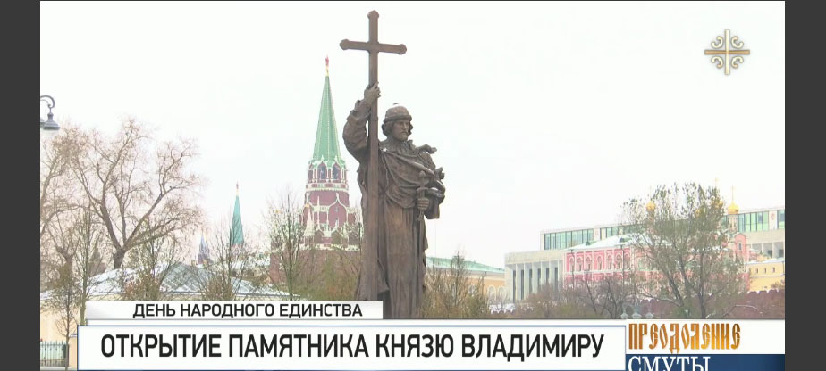 В День Народного единства в Москве открывается памятник святому равноапостольному Князю Владимиру. Памятник Крестителю Руси составляет 16 метров в высоту, на его создание ушло 25 тонн бронзы. Позади него расположены три барельефа, повествующие о его деяниях. К монументу ведет лестница с волнообразными ступенями. Вокруг высажен газон со встроенной подсветкой.