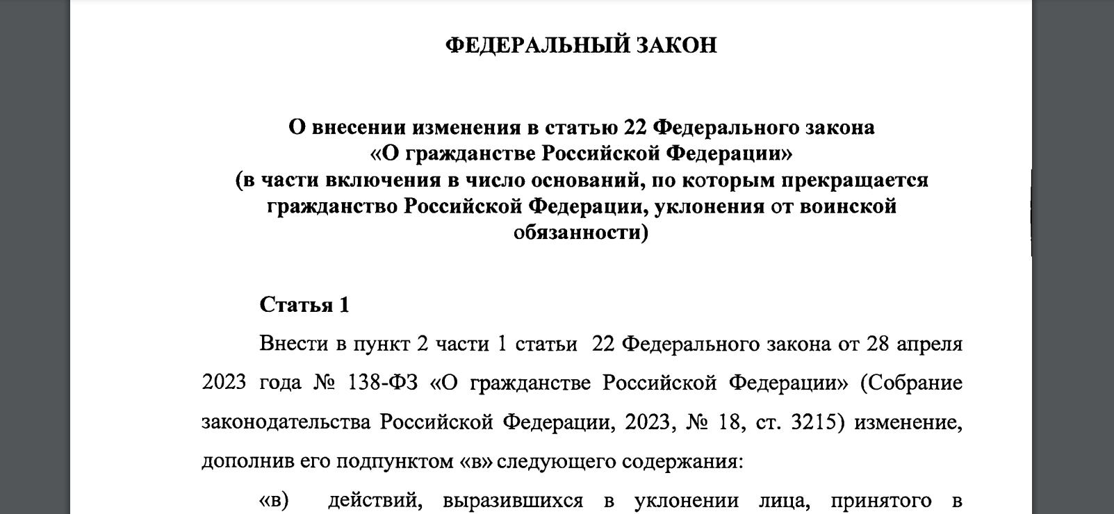 Так, депутат Михаил Матвеев 28 августа внёс в Госдуму законопроект о прекращении приобретённого гражданства России за уклонение от воинской обязанности.
