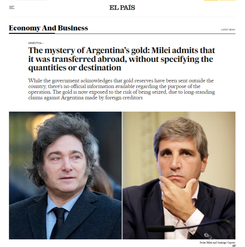 El País. Президент Милей признал, что золото вывезено за границу. Но не сказал, куда и зачем.