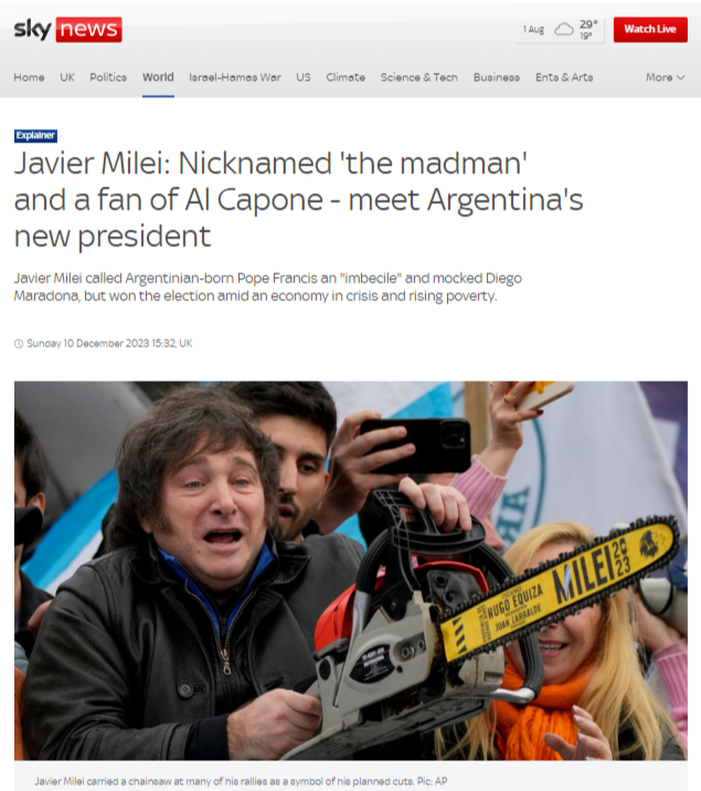 Sky News. Хавьер Милей по прозвищу "сумасшедший".