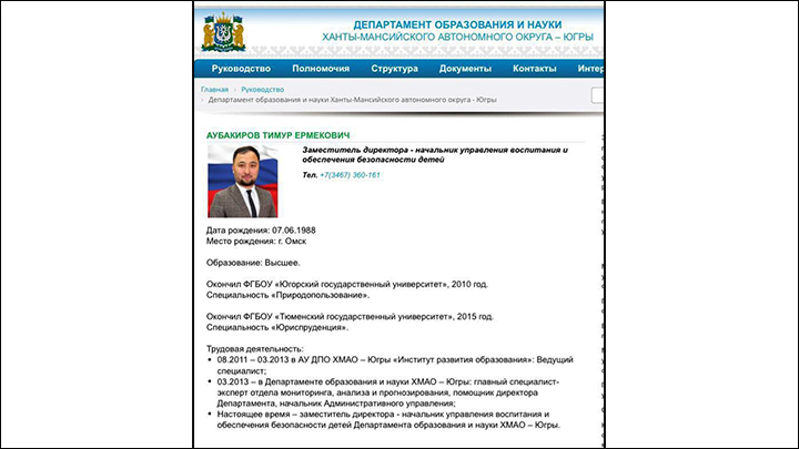 Блогеры покопались в его прошлом – на его странице в соцсети и обнаружили, что он тоже был не в ладах с русским языком – "едва справлялся с окончаниями и пунктуацией", писал слово "цирк" через букву "ы". А также обнаружили матерные высказывания, которые Аубакиров, даже став начальником управления воспитания (!) детей Ханты-Манийского округа, не потрудился удалить. Пока не разразился скандал.
