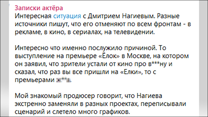 Дмитрия Нагиева вычеркнули не только из фильма. Скриншот: t.me/zapiskiaktera