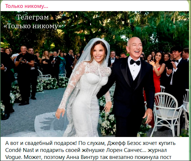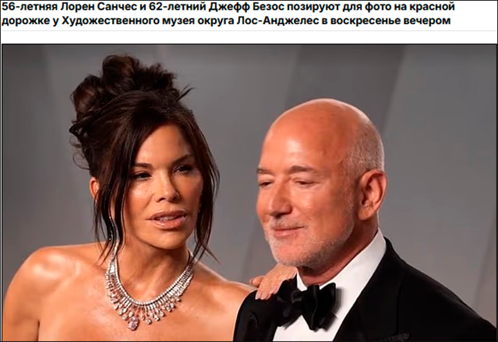 Безос со своей молодой женой. Скриншот: ТГ-канал "Только никому..."