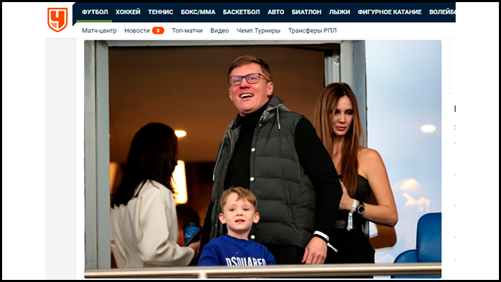 Анохин в ложе VIP на футбольном матче. Скриншот с сайта championat.com