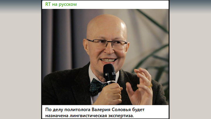 Источником очередной утки, на которую (скорее всего, сознательно) купились английские СМИ, стал телеграм-канал "Генерал СВР", автором которого называют российского фрик-политолога, историка, бывшего заведующего кафедрой рекламы и связей с общественностью МГИМО Валерия Соловья*.