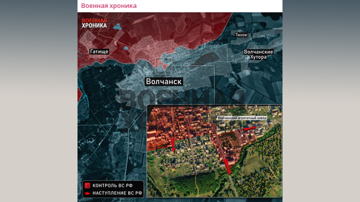 Русская армия сейчас сосредоточена на зачистке жилых кварталов, а также на выходе к мосту через реку Волчья. Бои идут тяжёлые. Враг в этом районе ожесточённо сопротивляется, цепляется за остатки городских кварталов и частного сектора. Отступление отсюда вынудит украинскую группировку отходить за Волчью. Это окончательно закроет вопрос потери противником северной части Волчанска.