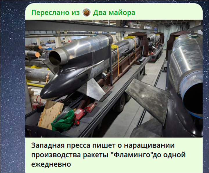 Ракеты "Фламинго" действительно красят в розовый цвет. Потому что так нужно для пиара. Скриншот: ТГ-канал "Военный осведомитель"