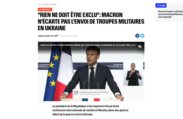 Макрон хочет отправить войска на Украину. Скрин сайта BFMTV