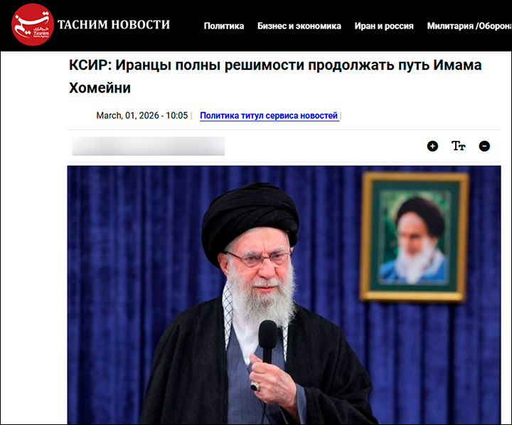 Скриншот страницы сайта иранского агентства Tasnim
