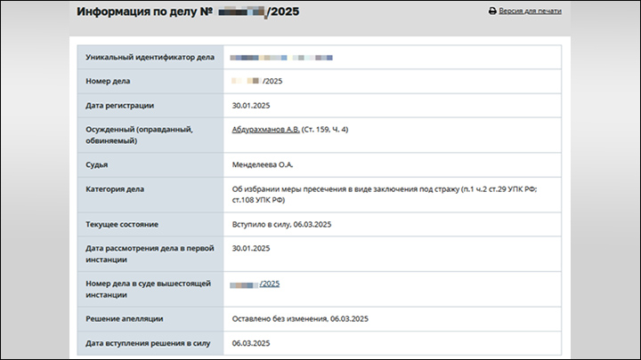 Карточка дела на сайте Мосгорсуда