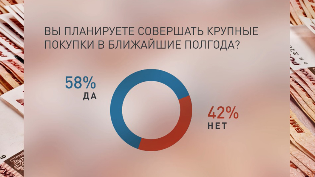 Планируете ли вы совершать крупные покупки в ближайшие полгода? На этот вопрос 58% респондентов ответили "да", 42% — "нет".