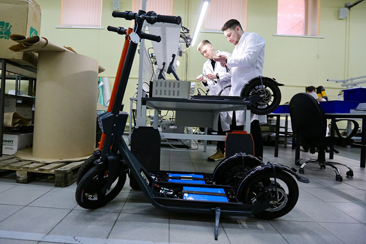 Самокат для городского кикшеринга, разработанный в Зеленограде, вполне может пойти и на экспорт. Фото: Зыков Кирилл/Агентство "Москва".