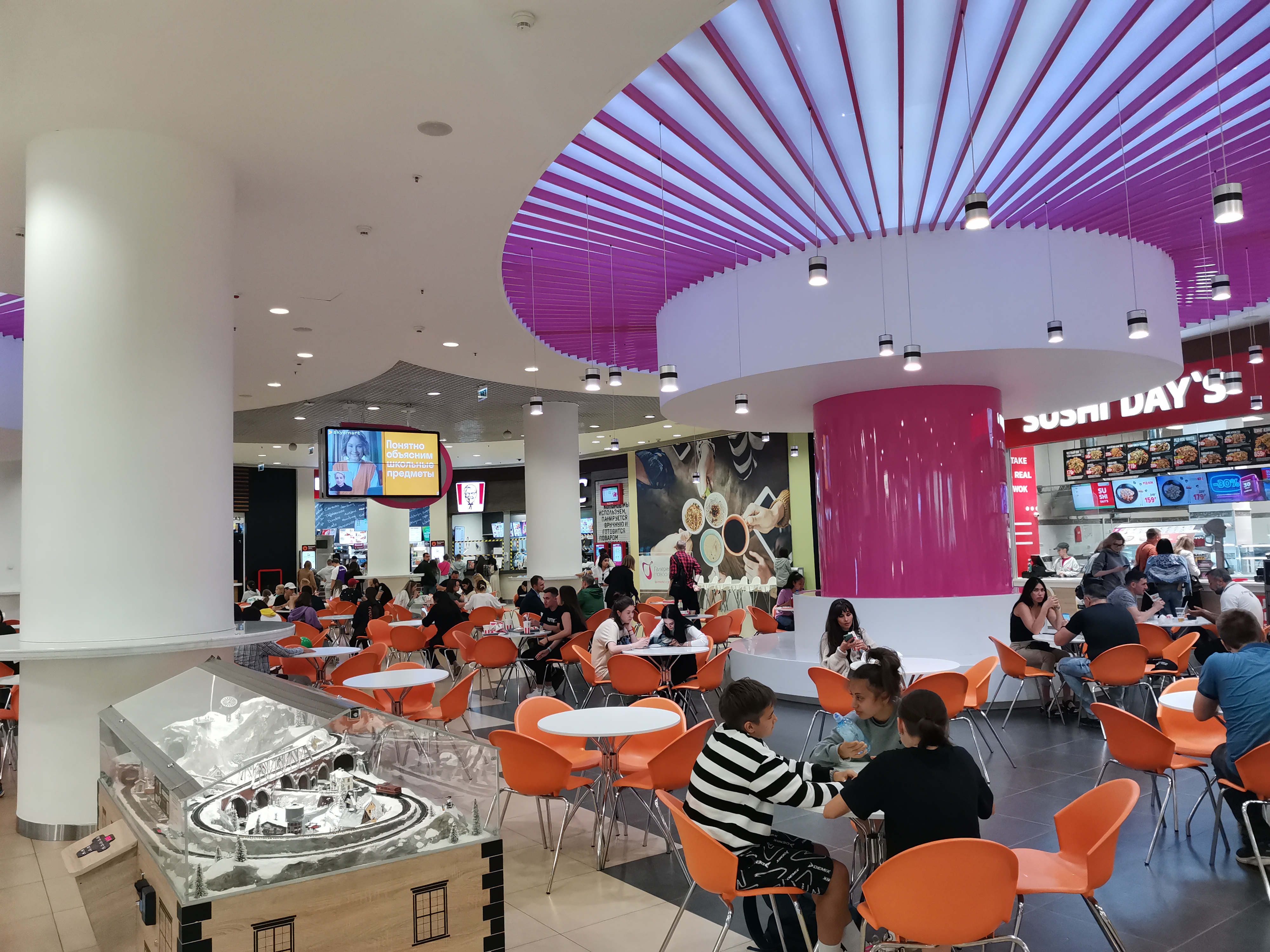 Пустынным выглядит разве что первый этаж, где размещаются магазины крупных зарубежных брендов вроде H&M, Zara, Pull&Bear и т.д, занимая самые дорогие площади. Зато на фудкорте довольно многолюдно, хотя народу не столько, как в выходные.