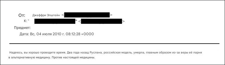 Эпштейн пишет, что Руслана умерла из-за "веры её парня". Скриншот Царьграда (автоперевод). Документы доступны на интернет-сайте justice.gov