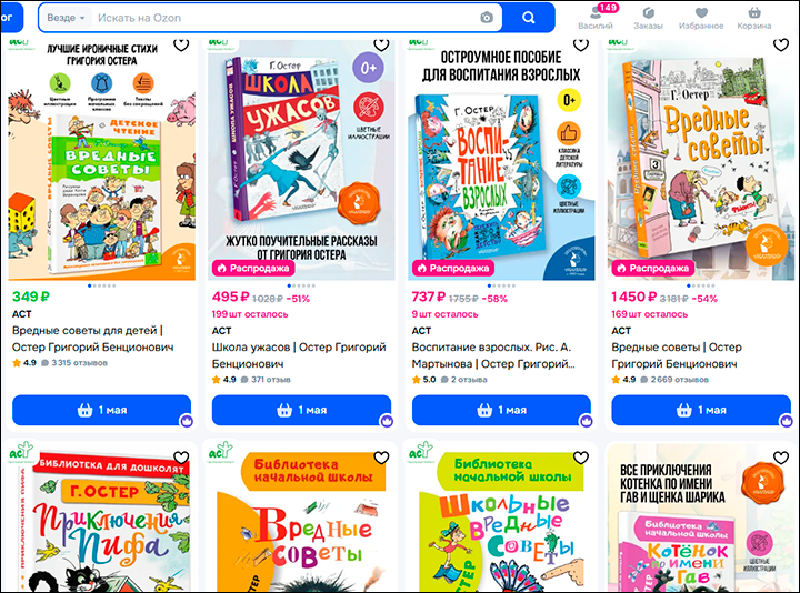 Книги Г. Остера в продаже. Скриншот: Царьград