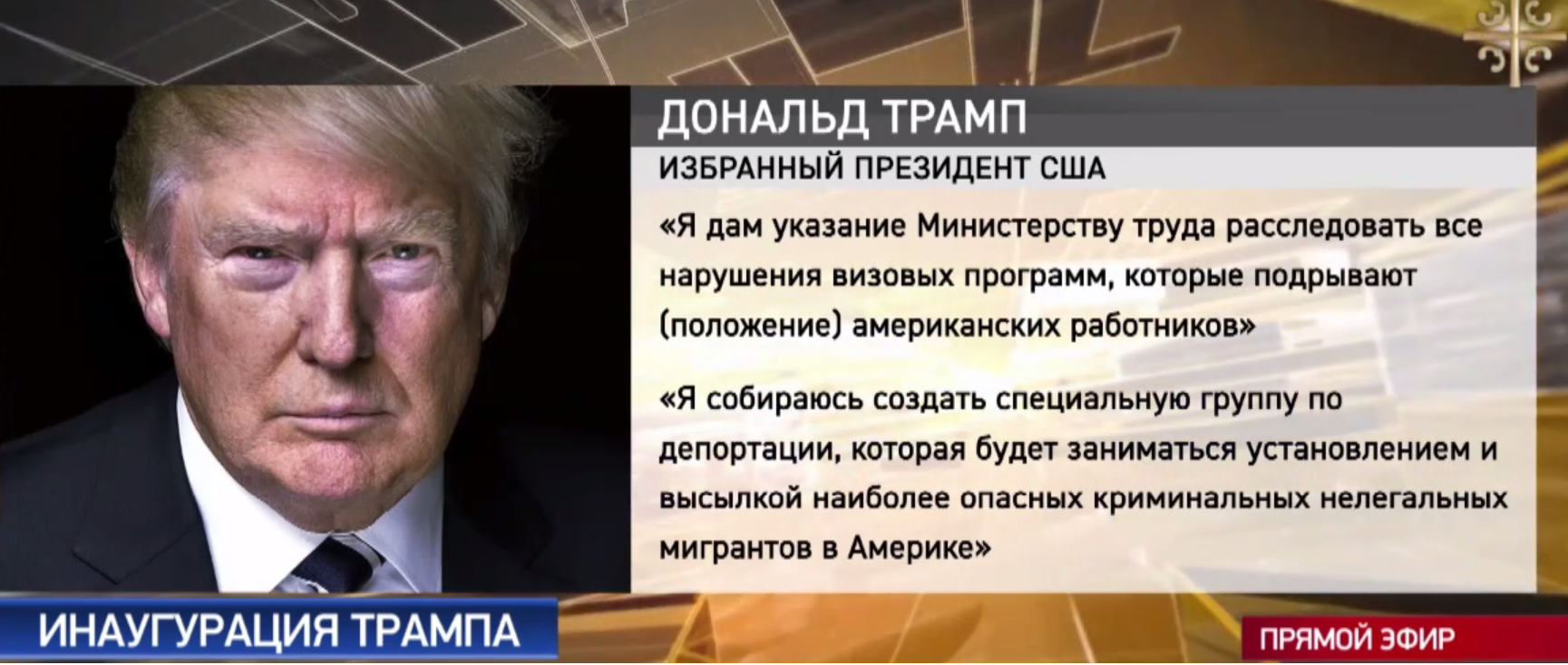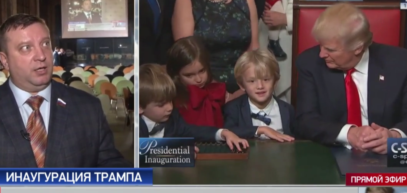 19.51 Журналист-международник, главный ведущий программы "Русский ответ" Андрей Афанасьев на связи. Он берет комментарий у политолога Вячеслава Матузова: "Инаугурацию можно сравнить с большой революцией в мире. Выборы в США потрясли все мировое сообщество. Мы наблюдаем коренной перелом в политике США, не надо забывать, эта страна, эта держава самая мощная и в экономическом, и в военном плане, влияющая на развитие обстановки на земном шаре. Есть шанс, что Америка вернется к себе и сыграет свою историческую роль. Ясно одно: та предвыборная кампания, с которой он выступил перед выборами, свидетельствует о серьезном отношении к глобальным проблемам".