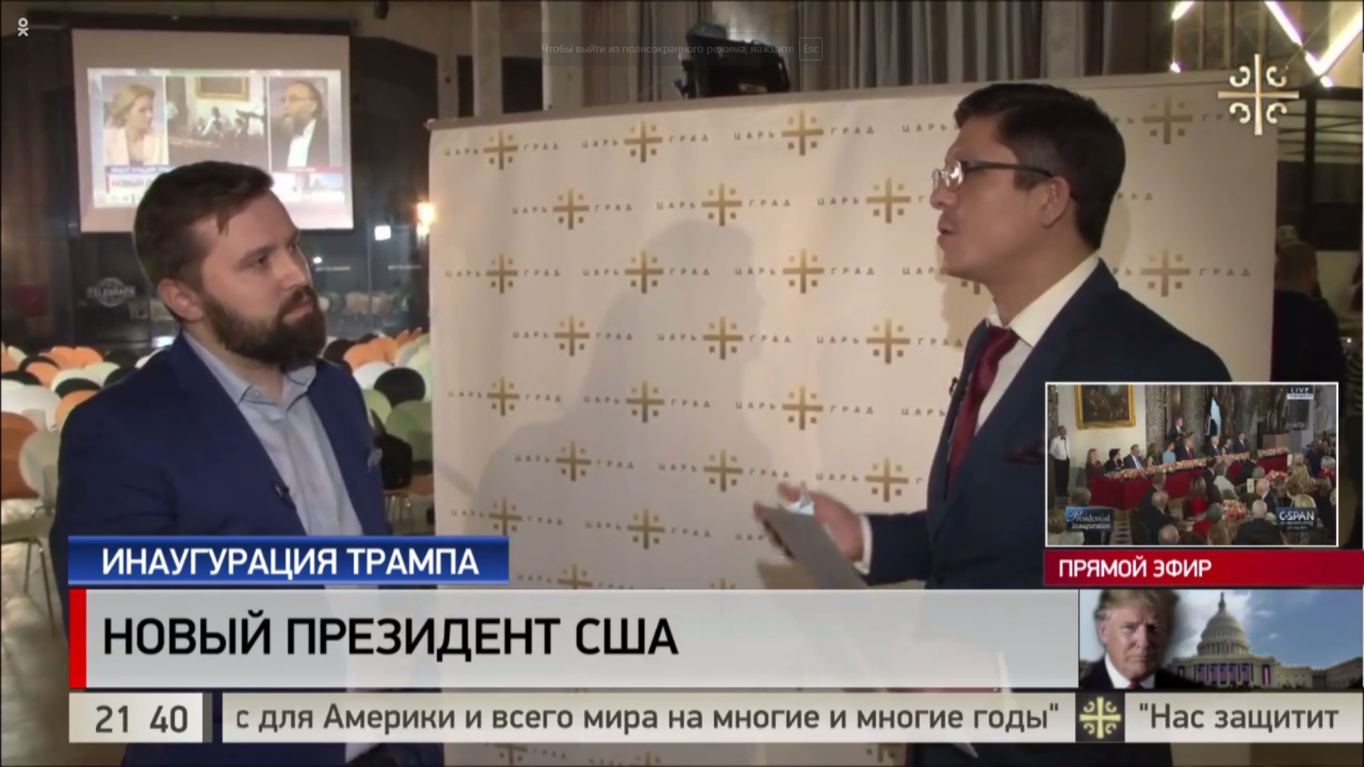 21.24 В эфире Царьграда - известный журналист Тим Керби. Он обратил внимание на религиозные аспекты речи Трампа.